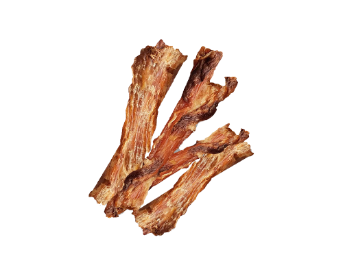 Snack en tiras masticables, sin gluten y sin aditivos.