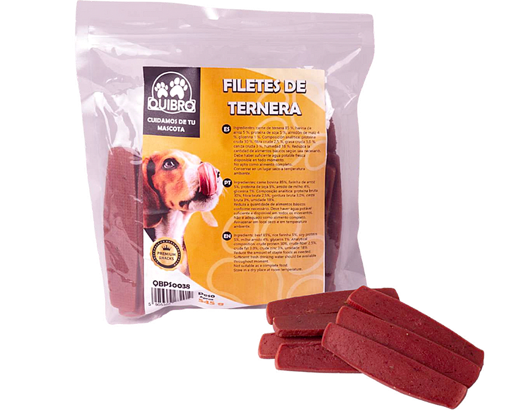Snack de carne de ternera, sabroso e irresistible, 100% natural, sin gluten y sin aditivos.